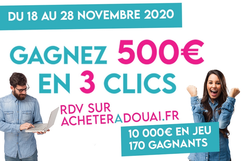 Du 18 au 28 novembre 2020, l'Union des Commerçants Douaisiens et la Ville de Douai organisent un jeu concours permettant de gagner des bons d'achats à utiliser sur la plateforme AcheteraDouai.fr